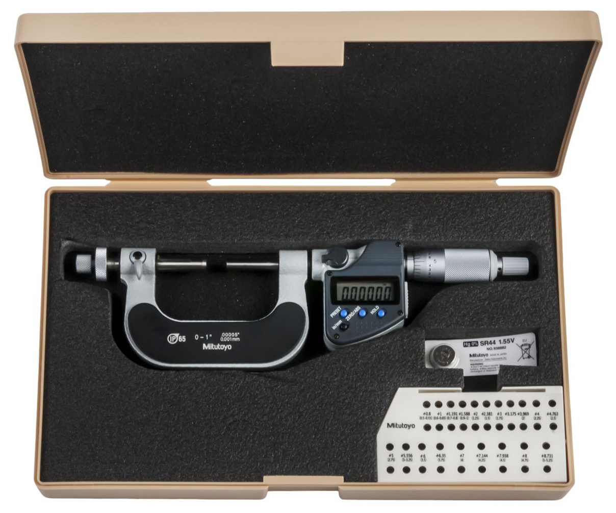 - کاربرد: رایجترین نوع میکرومتر برای اندازهگیری ابعاد خارجی قطعات، مانند قطر شفتها، ضخامت ورقهها و بلوکها.