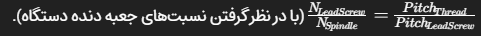 - تنظیم چرخدندههای گامزن برای هماهنگی حرکت پیچ راهنما (Lead Screw) و قطعه کار.