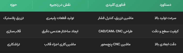 ترکیب سه صنعت تزریق پلاستیک + قالبسازی + تراشکاری CNC یکی از محورهای رشد تولید غیرنفتی ایران تا سال ۱۴۱۰ شناخته شده است.