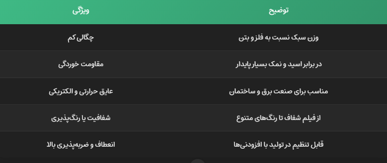 ویژگی: استحکام زیاد، مقاومت حرارتی بالا، مناسب برای کاربردهای مهندسی و ساختمانی.