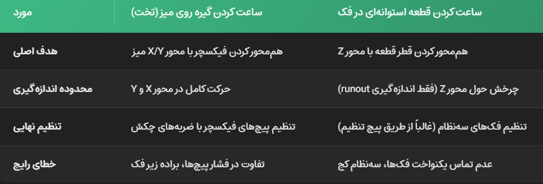 ساعت کردن یک مهارت تکرارشونده است که صحت آن نه تنها به ابزار، بلکه به انضباط اپراتور وابسته است. درک تفاوت بین runout اسپیندل و عدم تراز میز، اپراتور را از یک کاربر صرف به یک متخصص در بهینهسازی فرآیند ماشینکاری تبدیل میکند.