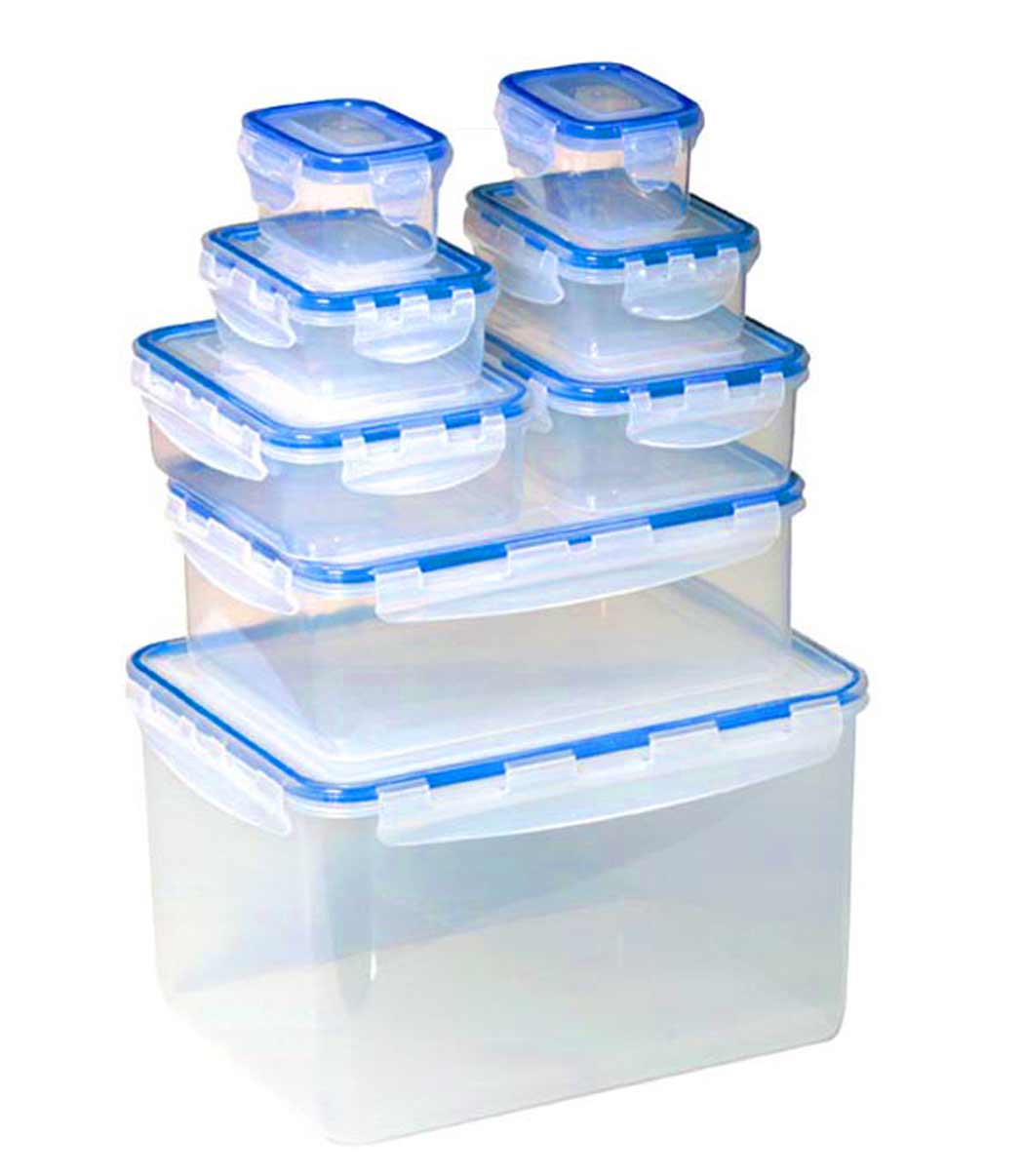 - ظروف غذای یخچال: ظروف پلاستیکی برای نگهداری غذا در یخچال با تزریق پلاستیک تولید میشوند. مواد معمولاً پلیپروپیلن (PP) است که مقاومت خوبی در برابر سرما دارد.